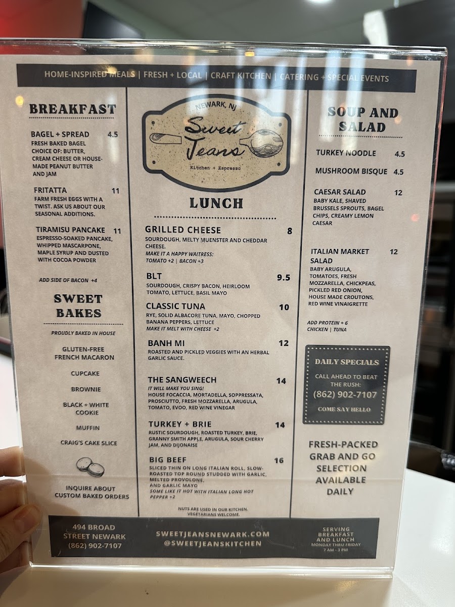 If you find yourself wandering through the bustling streets of Newark, NJ, make sure to stop by Sweet Jeans Kitchen + Espresso Bar. Located at 494 Broad St, this charming café is not just a coffee shop; it's a cozy haven where culinary creativity meets unbeatable coffee, ensuring a delightful experience for all who step through its doors.